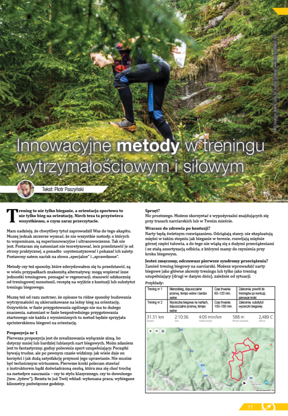 | 2019-01-21 00:00 | Czwarty numer Magazynu | Tuż przed Świętami Bożego Narodzenia ukazał się czwarty numer Magazynu bieg na orientację. To ekskluzywny, jedyny wydawany w Polsce, periodyk o tej tematyce. Tym razem oferuje czytelnikom sześćdziesiąt stron, zawierających kilkadziesiąt artykułów dotyczących BnO. Wśród nich nie zabrakło tekstów i wywiadów opisujących działalnośź Polskiego Związku Orientacji Sportowej. | ||