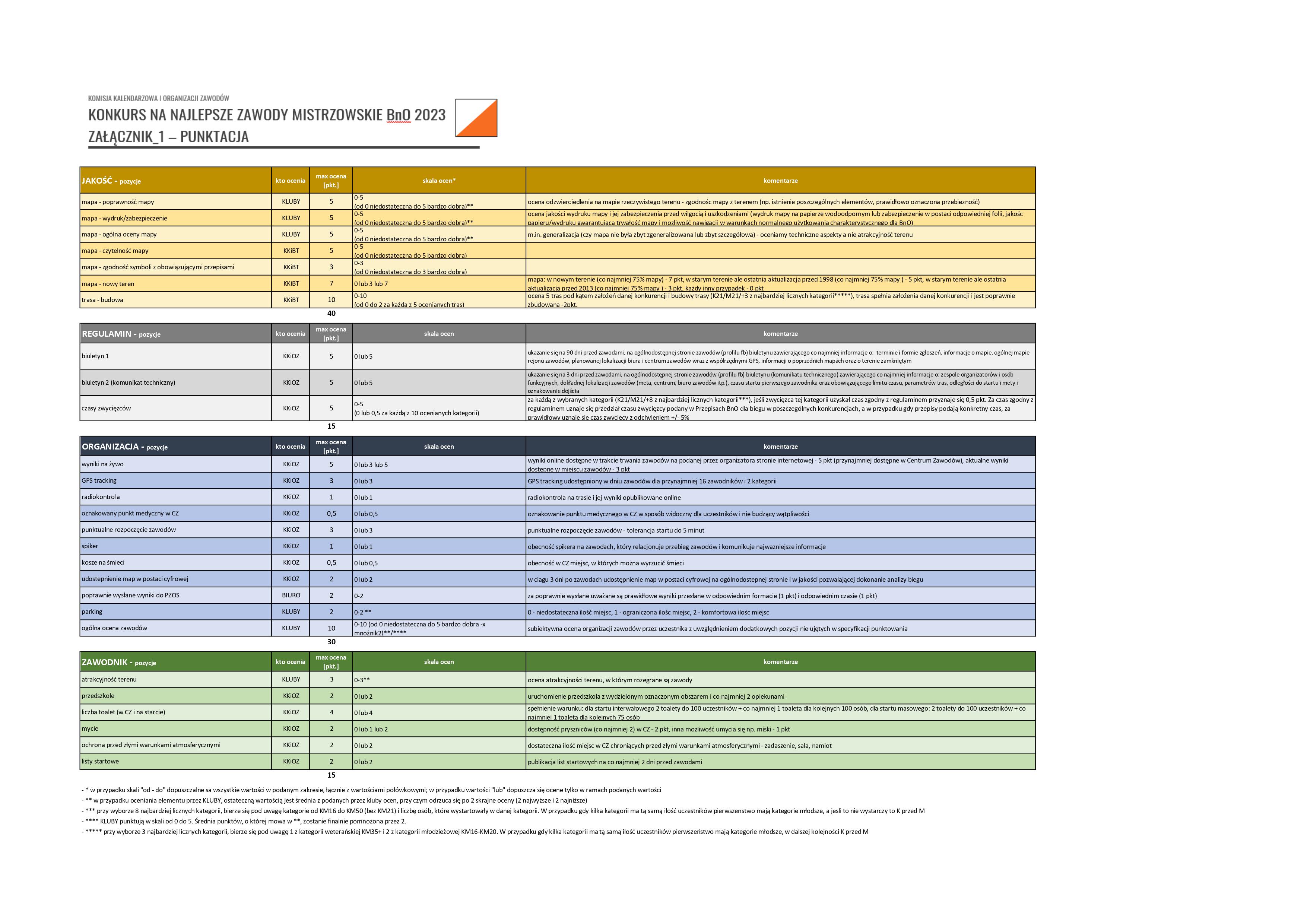 | 2025-12-09 13:43 | Łukasz Charuba | Zmiany w regulaminie rankingu BnO od 2026 roku | Informujemy, że Zarząd PZOS uchwalił zmiany w regulaminie rankingu BnO, które wejdą w życie od 2026 roku. Wprowadzenie zmian jest następstwem wniosku Krajowego Zjazdu Delegatów PZOS z 2025 roku dotyczącego uporządkowania rankingu i postulatów ze środowiska dotyczących dywersyfikacji współczynników rankingowych na zawodach. W ramach nowelizacji wprowadzono następującą dywersyfikację współczynników: a. Mistrzostwa Polski, Mistrzostwa Polski Weteranów, Puchar Najmłodszych, Klubowe Mistrzostwa Polski =